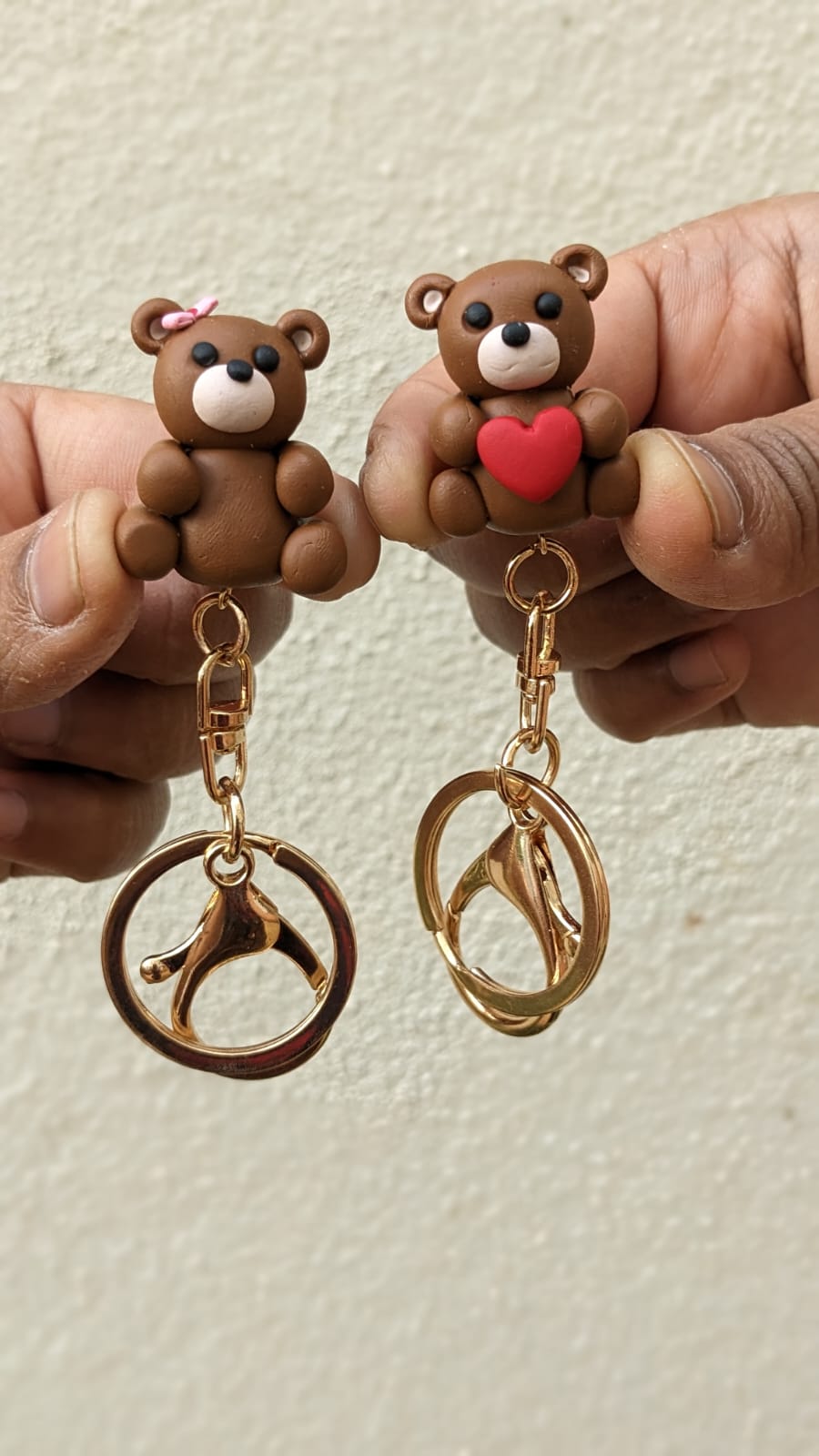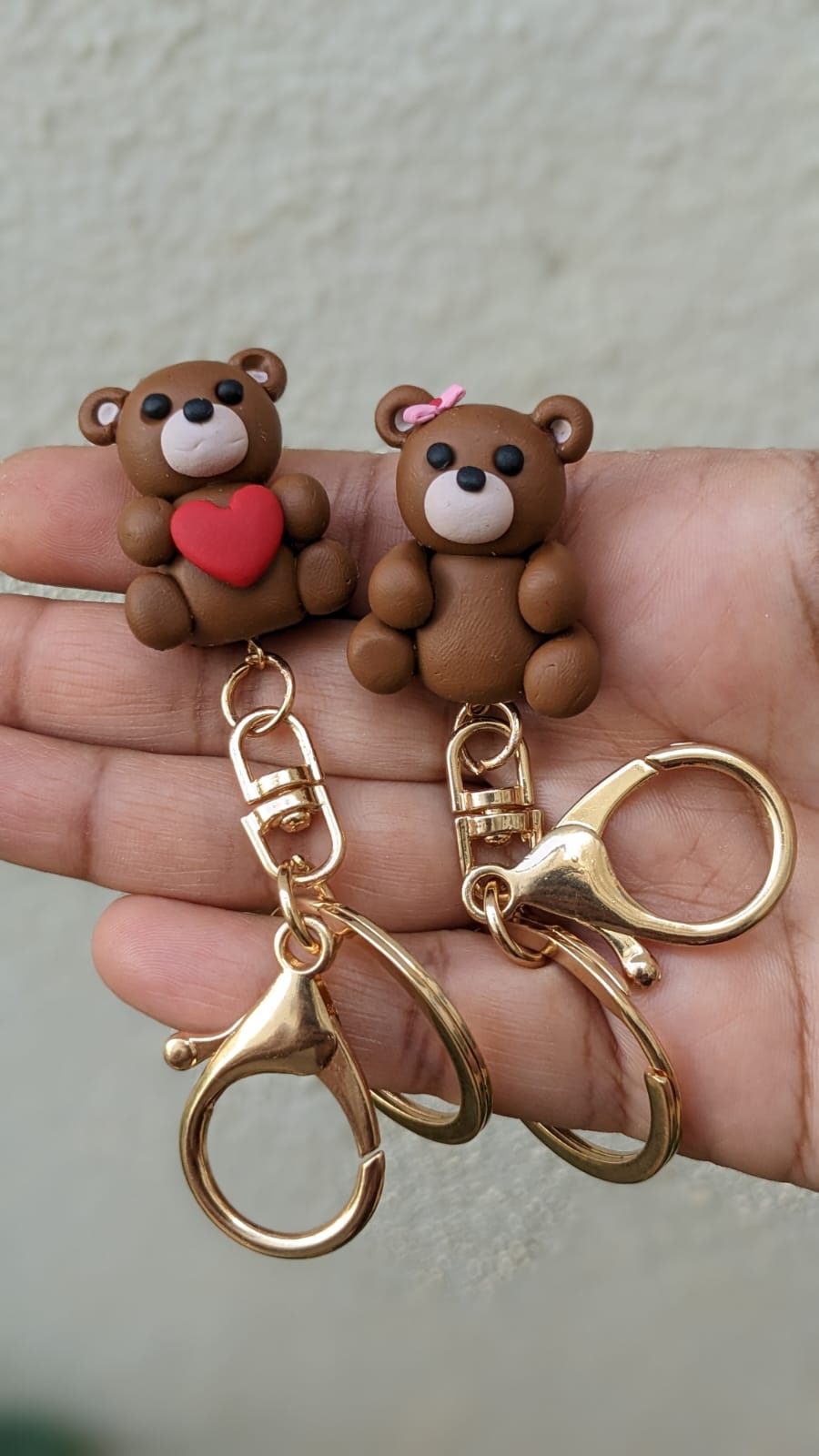 A unique handcrafted miniature "Pair of bear keychains with lobster clasp for him and her.