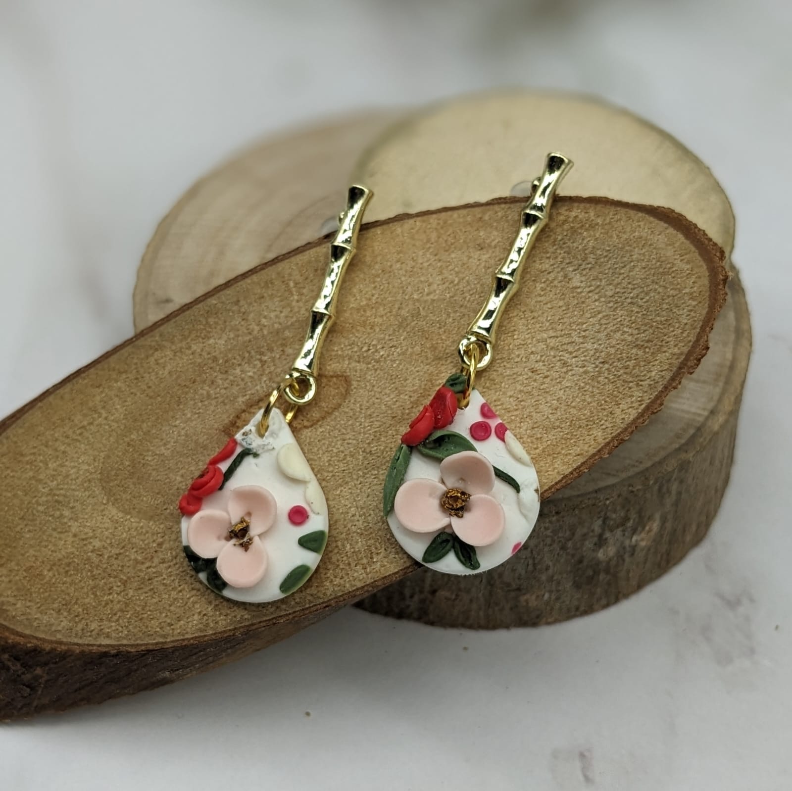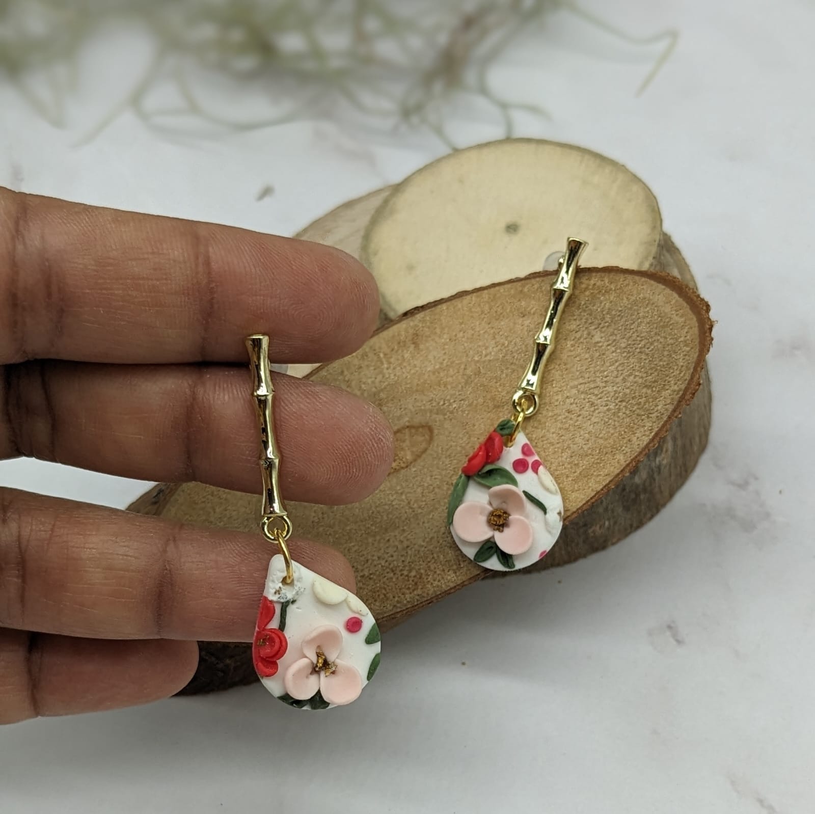 A unique pair of earrings handcrafted in polymer clay attached with gold plated posts. These earrings are perfect for both casual and office wear, adding a touch of elegance to any outfit. They are lightweight and comfortable to wear, making them a must-have accessory for any fashion-forward individual.