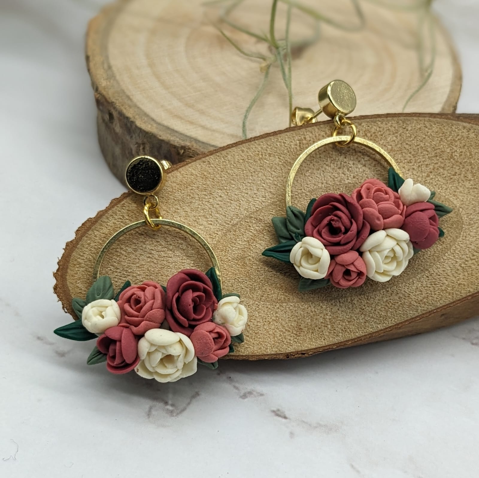 Rose Orchard is a unique pair of earrings handcrafted in polymer clay and attached with gold plated posts. Perfect for casual or office wear, these earrings will be shipped in 2-3 days.